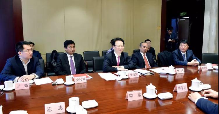 3月20日,吉林省省长景俊海在参加全国两会后,不辞辛苦、情系桑梓,第一时间率常务副省长林武、发改委主任安桂武、财政厅厅长谢忠岩、办公厅副主任于亮、吉林市市长刘非等领导在中国职工之家会议厅亲切会见了吉林大学北京校友会代表团。